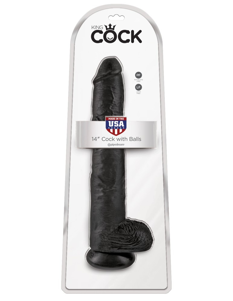 14" Cock with Balls Black – Valósághű fekete dildó herékkel