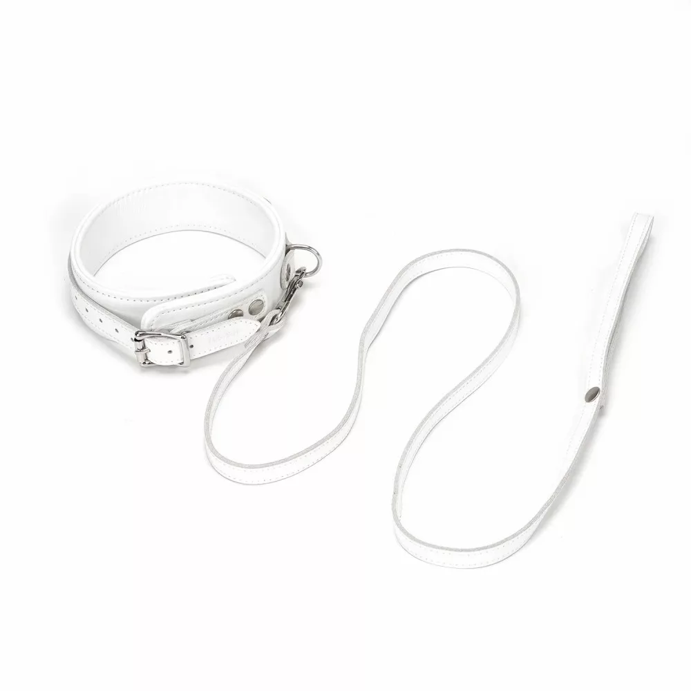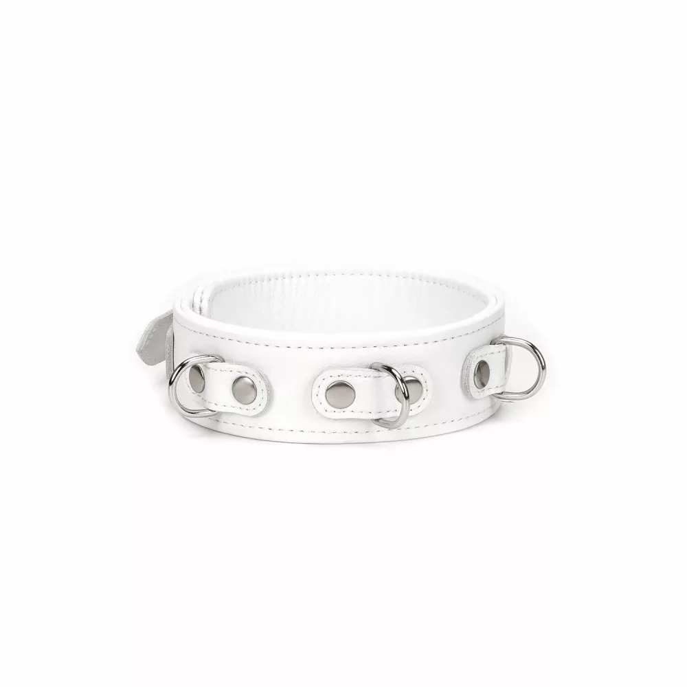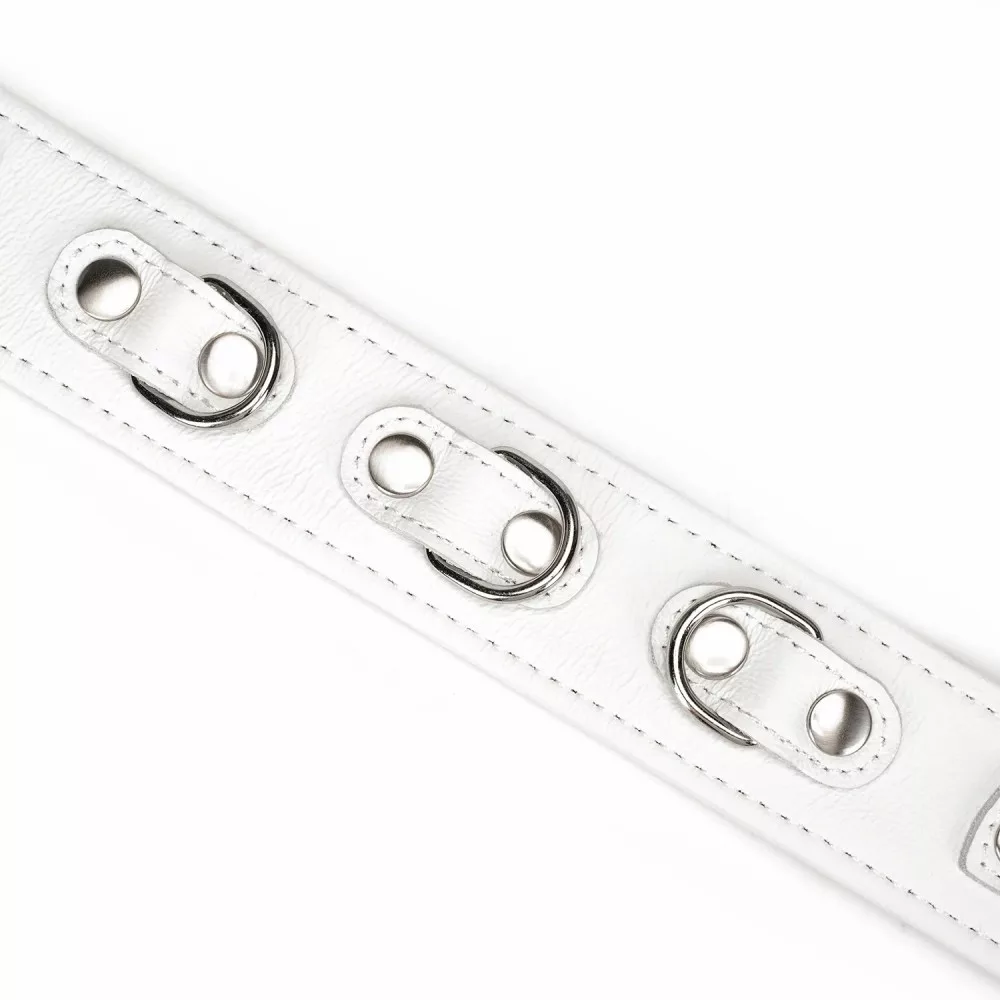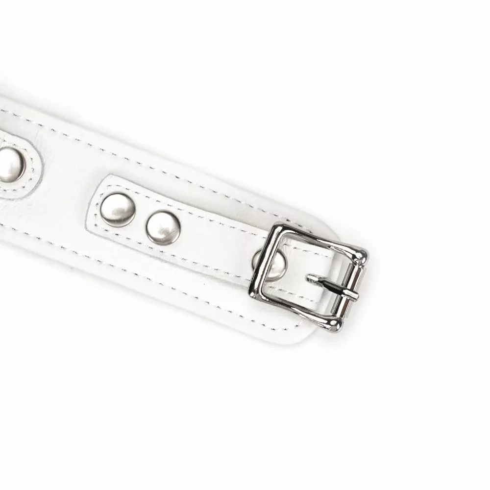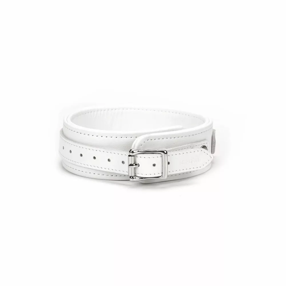 rugalmas, tiszta fehér bőrből készült extravagáns bondage nyakörv elegáns