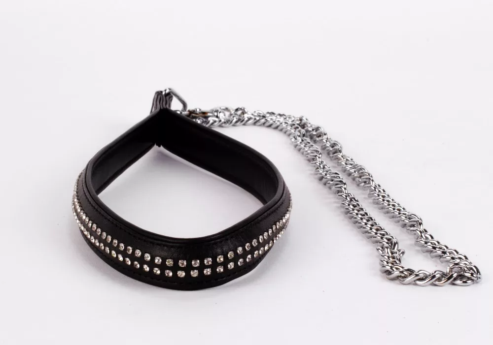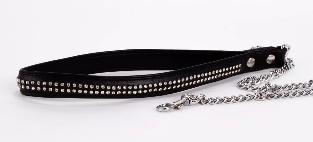 póráz, 2 sor strasszal díszítve. A lánc hossza 34 cm.