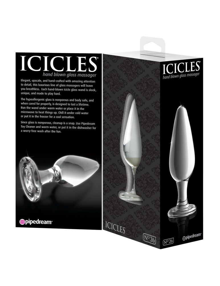 Elegáns kivitelű, klasszikus kialakítású, hipoallergén bór-szilikát üvegből kézzel készített, sima felületű fenékdugó, biztonságos alappal. Uniszex, férfiaknak és nőknek egyaránt ajánlott. A termék nem porózus, lehűthető és melegíthető is.Tisztítása : minden használat előtt és minden használat után langyos szappanos vízzel és segédeszköz tisztítóval kell lemosni. Vízbázisú síkosító javasolt.
