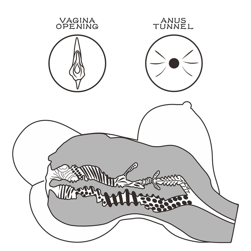 kialakított, ánuszt és vaginát formázó testnyílásokkal és mellekkel ellátott