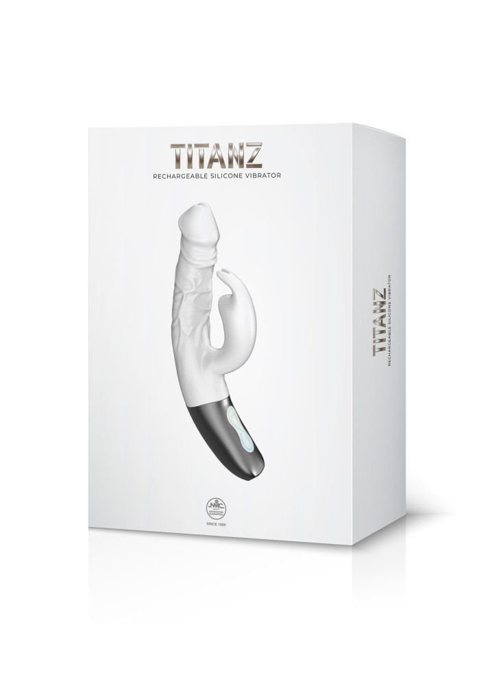TITANZ 7" SILICONE RECHARGEABLE VIBRATOR IN IVORY WHITE