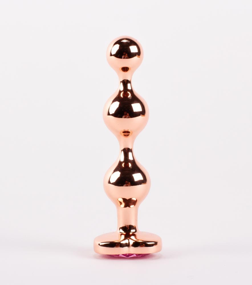 Záróizom tágító, lazító eszköz, amely 3, eltérő átmérőjű gömbbel van kialakítva. Uniszex, férfiaknak és nőknek egyaránt ajánlott. A fényes fémfelület könnyen csúszik és nagyon kényelmes behatolást tesz lehetővé. Az alap szív formájú és gyémánt textúrájú.