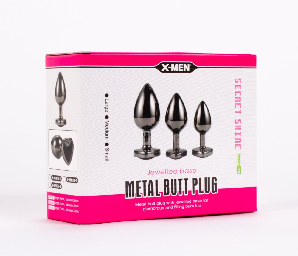 X-MEN Secret Shine – fekete fém anál plug szett ékköves talppal