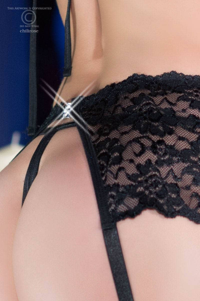 Chilirose CR 4220 csipkés fehérnemű együttes harisnyatartóval S fekete